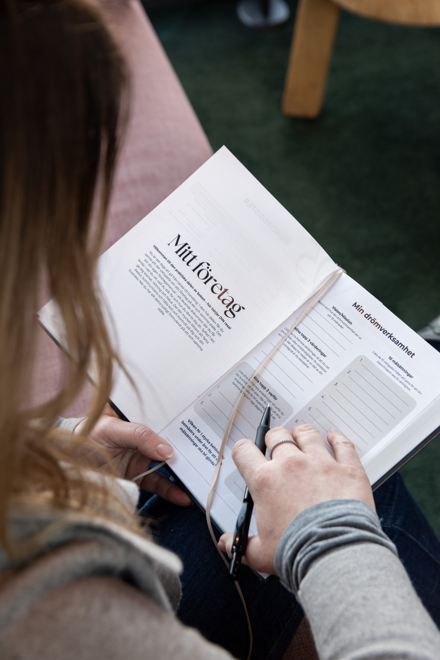 Jag känner mig både inspirerad och lugn, för nu känner jag att nu vet jag vad jag ska göra. Nu har jag min, målsättning liksom. När man känner att man längtar efter att få pausa världen för att hinna ikapp, då är det här ett jättebra retreat , för då hinner man ikapp och man får sätta sig ner och fundera vad är det som är viktigast, vad vill jag uppnå, vad har jag för mål och drömmar. Jag tror just den här boken som vi fått med oss, att jag har något fysiskt med mig som jag kan ta med mig hem som blir enkelt för mig att fortsätta jobba med och implementera i min vardag, det känns bra. Och att vi jobbade med det tillsammans så att man har fått en bra start.